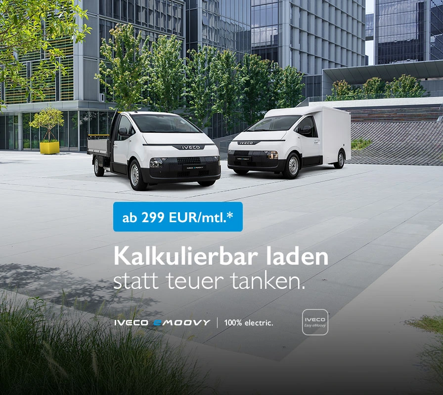 Jetzt den neuen IVECO eMoovy ab monatlich 299 Euro* leasen.